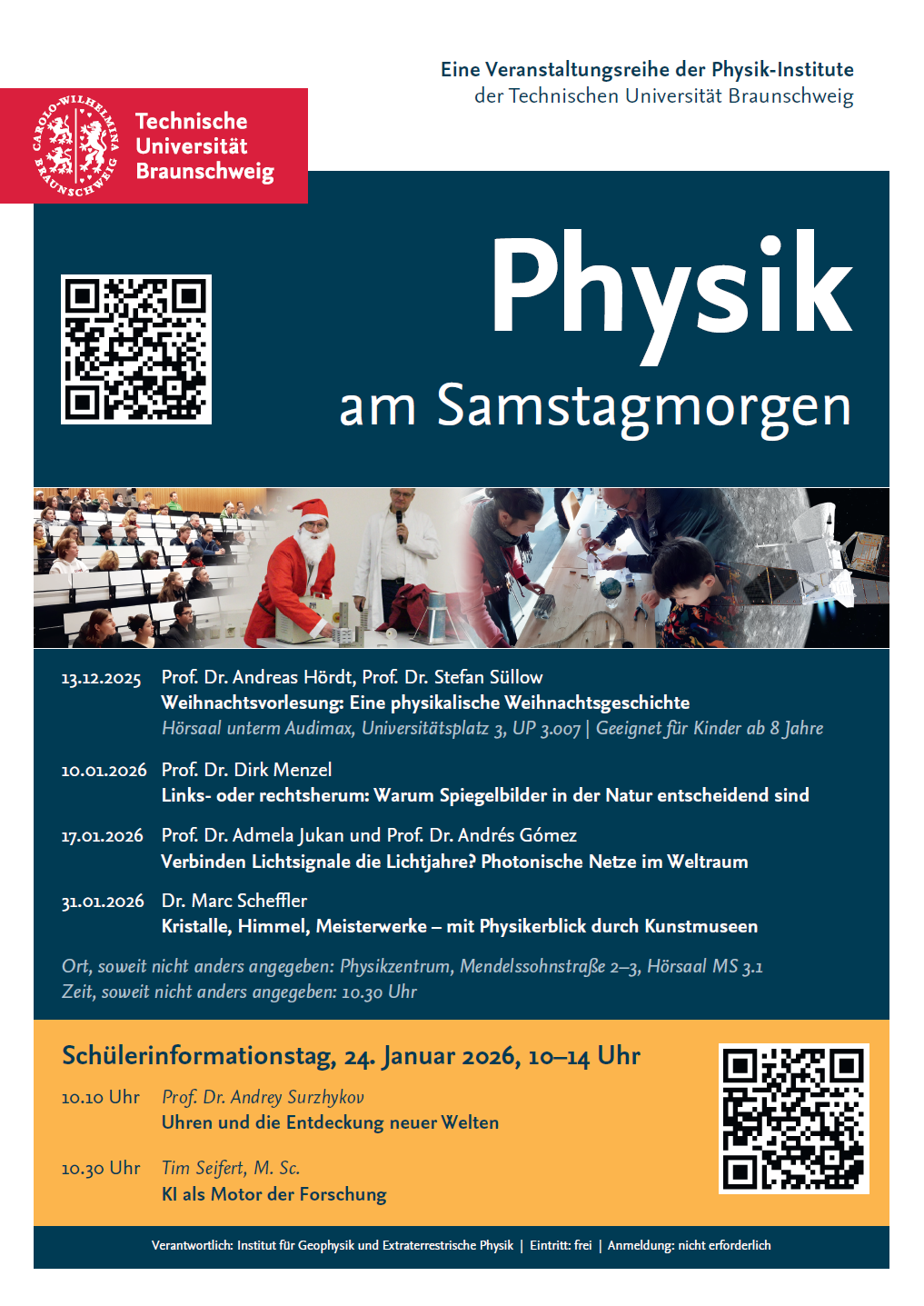 Entdecke die Faszination der Physik: Herzliche Einladung ins Physikzentrum der TU Braunschweig am Samstag, 24. Januar 2026, von 10 bis 14 Uhr!