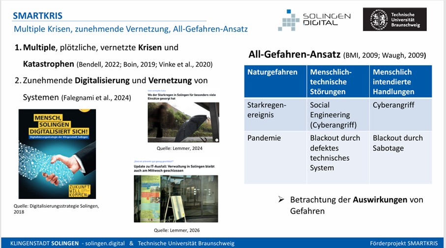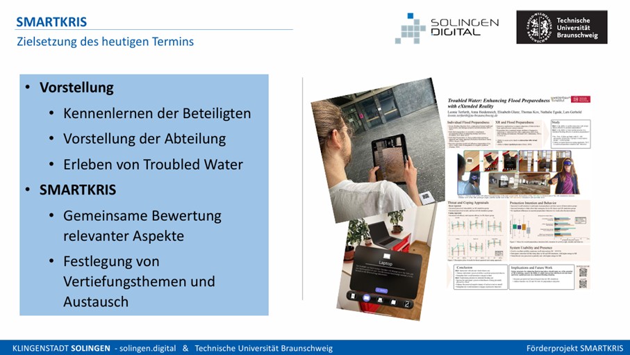 In dem vom BMFTR-geförderten Projekt SMARTKRIS diskutierten das Projektkonsortium Solingen.digital und die Technische Universität Braunschweig (TUBS) sowie der Projektträger VDI, vertreten durch Julia Henn und der assoziierte Partner STRÖER folgende Fragen: