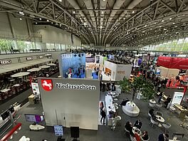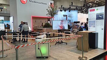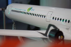 Am Niedersachsen-Stand präsentierte der Exzellenzcluster SE²A - Sustainable and Energy Efficient Aviation das skalierte Flugzeugmodell CLIME – ein Highlight der Forschung des Exzellenzclusters.