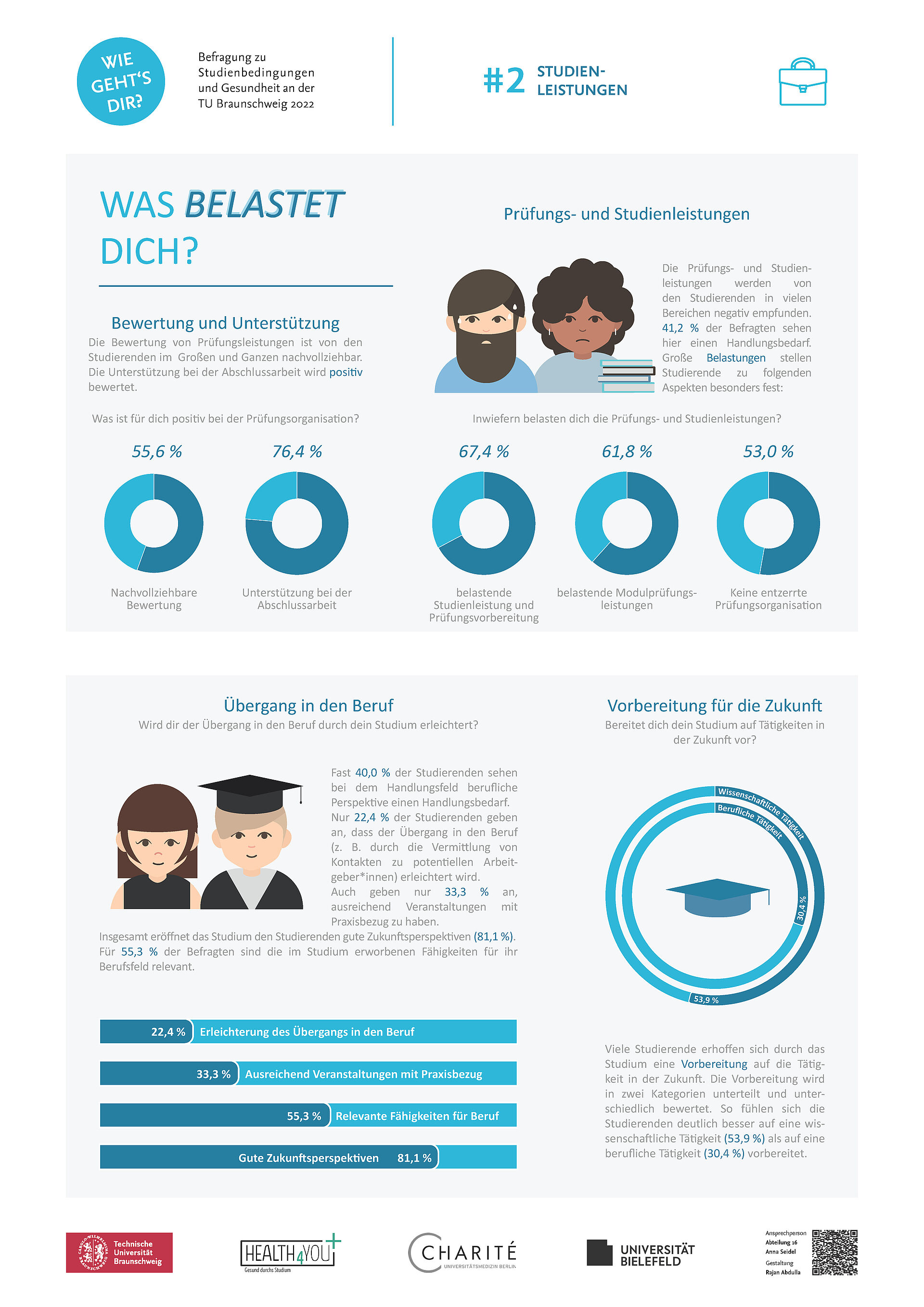 Unterstützt wird die Befragung von der Universität Bielefeld Gesundheitsmanagement und der Charité Universitätsmedizin Berlin. Genutzt wird ein Fragebogeninstrument „Bielefelder Fragebogen“, welches von der Universität Bielefeld entwickelt und teilweise von der TU Braunschweig angepasst wurde. Die Durchführung und Auswertung der Befragung wird von der Charité unterstützt. In Zusammenarbeit mit der Studentischen Gesundheitsförderung der TU Braunschweig (HEALTH4YOU) wurden die Ergebnisse analysiert und veröffentlicht sowie Maßnahmen entwickelt.