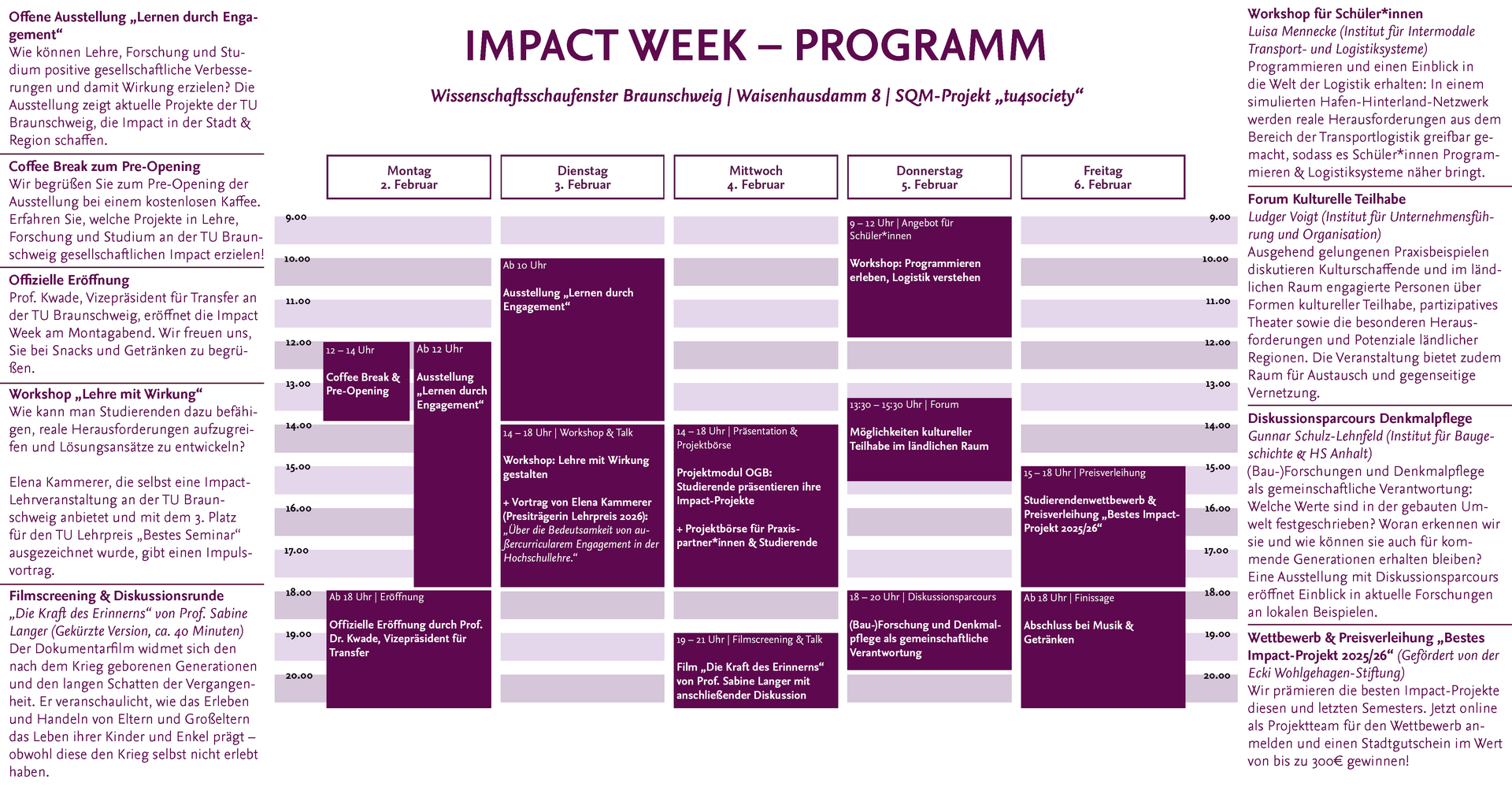 Wir laden interessierte Studierende und Mitarbeitende der TU Braunschweig sowie Bürger*innen und Schüler*innen herzlich zur Impact Week ein.