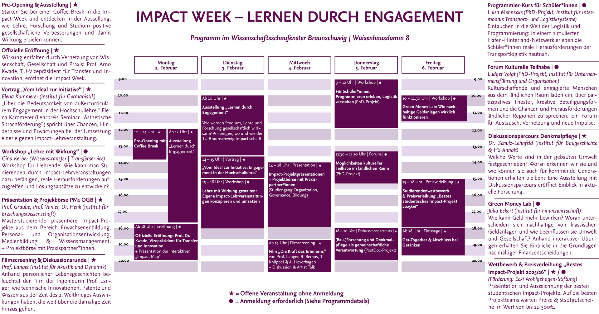 Es erwarten Sie Workshops, Diskussionen, Ausstellungen, Präsentationen, Vorträge, einer Filmvorführung und der Studierendenwettbewerb „Bestes Impact-Projekt 2025/26“ mit Preisverleihung.