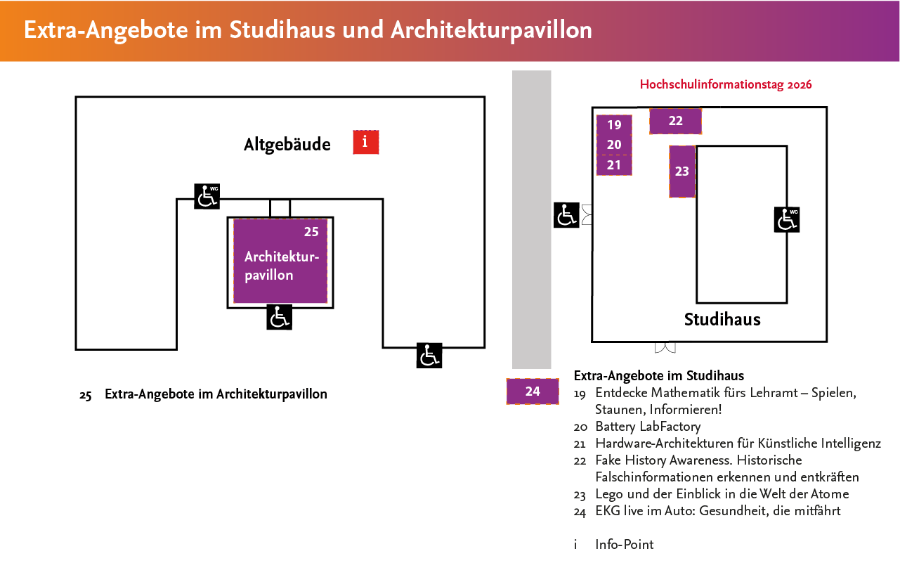 In unserer Infoecke bekommst du alle Infos zu den Studiengängen Architektur, Bauingenieurwesen, Umweltingenieurwesen, Umweltnaturwissenschaften, Verkehrsingenieurwesen und Wirtschaftsingenieurwesen/Bau. Du erfährst, wie das Studium aufgebaut ist, welche praktischen Projekte du während des Studiums machst und welche Karrieremöglichkeiten dir offenstehen. Unsere Studierenden und Mitarbeitenden sind vor Ort, um dir alle deine Fragen zu beantworten – egal, ob du dich für innovative Bauprojekte interessierst, mehr über nachhaltige Stadtplanung erfahren möchtest oder wissen willst, wie man im Studium die Umweltprobleme der Zukunft angeht.